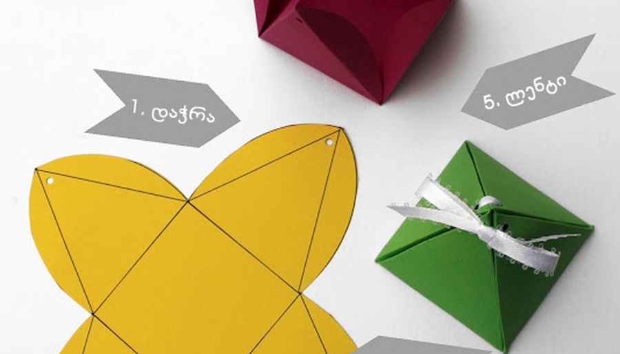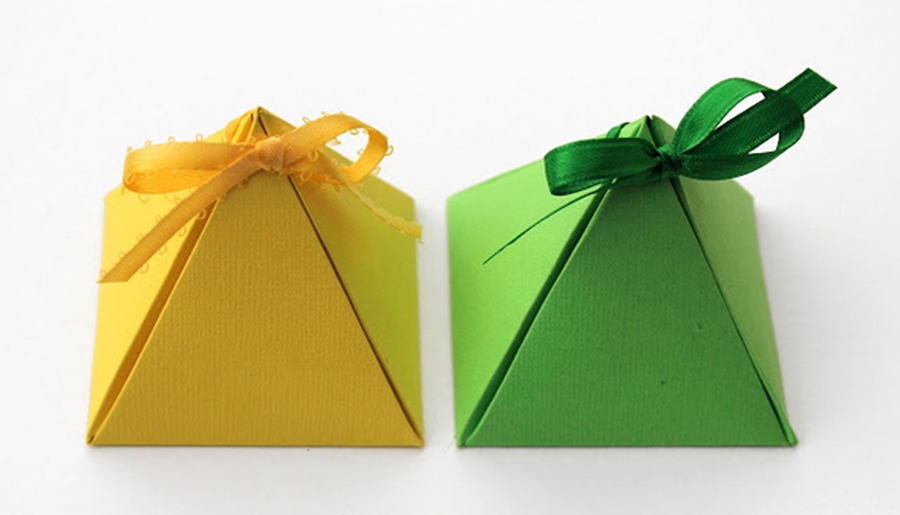 ამავე პრინციპით, სამკუთხა პირამიდის ფორმის ყუთის დამზადებაც შესაძლებელია. იმედი მაქვს მოგეწონათ ეს მარტივი იდეა.