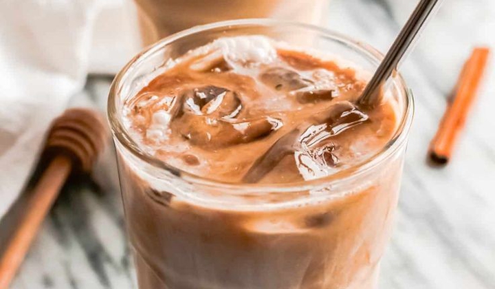 ბლენდერში ჩაყარეთ ყავა დაუმატეთ რძე, ნაყინი და მოხარშული შესქელებული რძე.