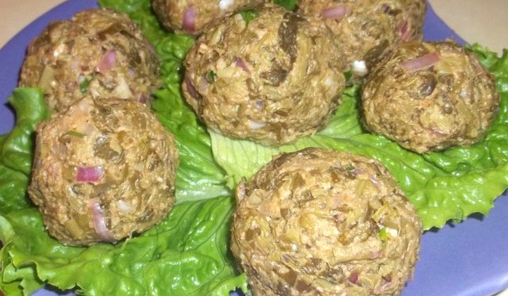 ეკალა შეგიძლიათ ბურთულებად დაამრგვალოთ და სალათის ფურცლებით გააფორმოთ. მიირთვით ცივი.