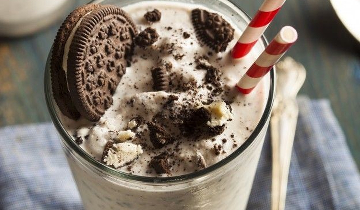 ორეოს ორცხობილა ვანილის ნაყინი ყინულის კუბები და ცივი რძე კარგად დააბლენდერეთ.