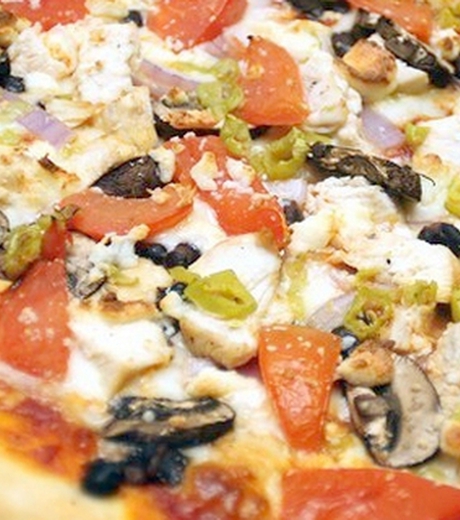 ცომი კარგად გააბრტყელეთ. წაუსვით სოუსი. მოაყარეთ ბულგარულები, სოკო და ზეთის ხილი. გამოაცხვეთ 8-10 წთ. 180° გრადუსზე.