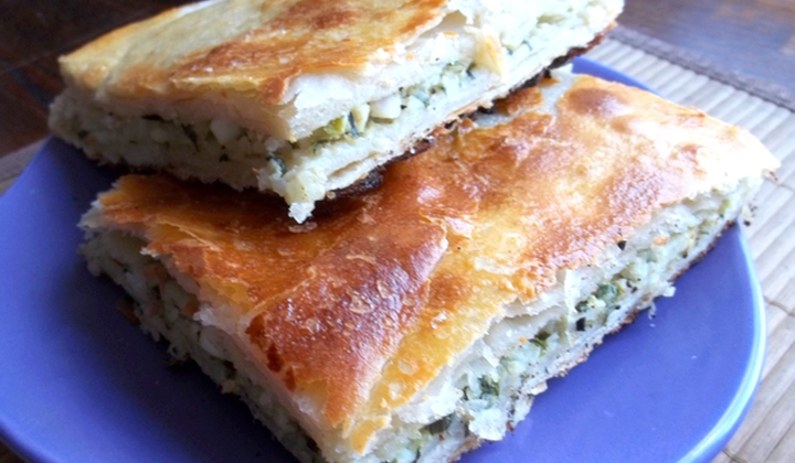მოცემული ინგრედიენტებით მოამზადეთ ფენოვანი ცომი. იხილეთ: ფენოვანი ცომის მომზადების წესი.